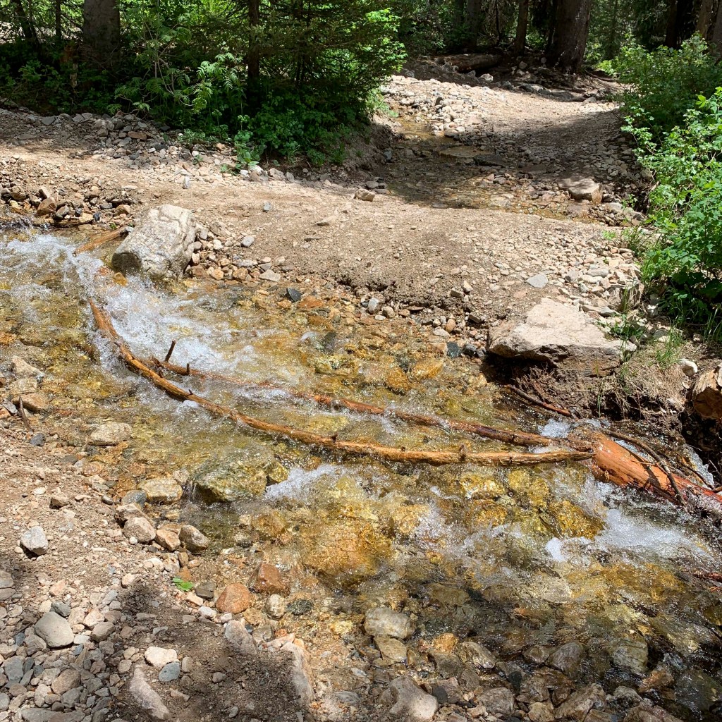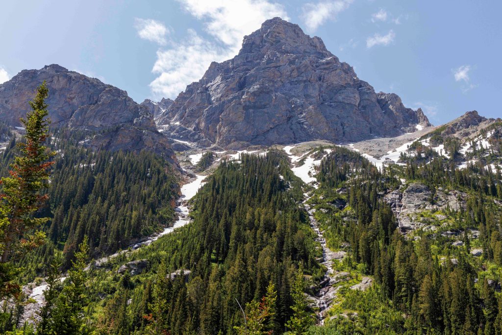 Happily, the Horse Trail is little known, moves through the cool forest, and has a lot of opportunities for an out of shape hiker to rest on boulders or downed trees. After reaching the intersection with the Cascade Canyon trail on test day, I went down the popular trail, happy to be going against the stream on the inboard side of the trail and confirming I did *not* want to hike up it.