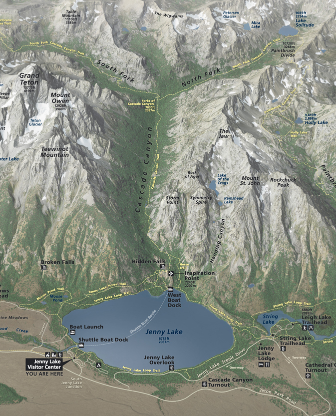 A couple days before, I explored an alternate route to the usual trail into the canyon. The popular trail can be traveled by 500+ visitors Per Hour! One Positive is the amazing view across Jenny Lake the trail has, but the Con (aside from traffic) is that it feels like a goat trail on a ledge (a real test of my nerves).