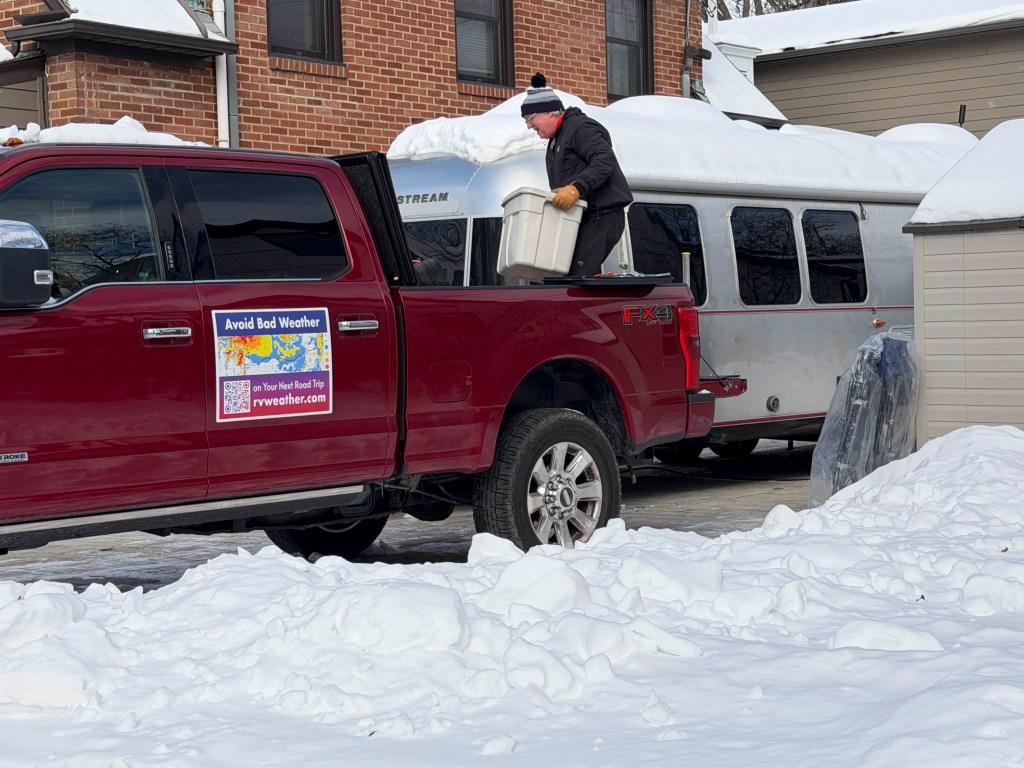 This may have been the most challenging starts to a trip — ever. We had a few snow storms blow through the week before our trip — so we were starting tired from shoveling the double-wide corner lot and 2 driveways. In addition, we had to shovel out the Airstream and truck, something we usually let Mother Nature handle.